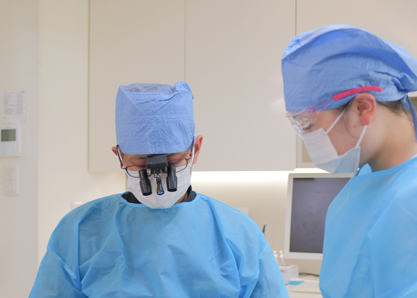 インプラント治療を行うためには、歯肉を切開しインプラントをあごの骨に埋め込むなどの手術が必要となります。しかし、こうした手術に対して怖いイメージを持つ方もいらっしゃるのではないでしょうか。そうした方のために当院では静脈内鎮静法による麻酔を行っており、眠っているときと同じ状態で手術を受けていただけます。また、当院には麻酔専門医がおりますので、安全に麻酔が可能です。