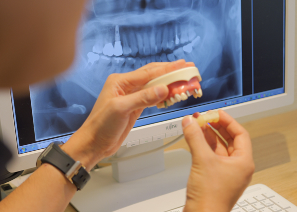 虫歯や歯周病がないか、噛み合わせの様子、あごの骨密度や骨の量などを確認します。